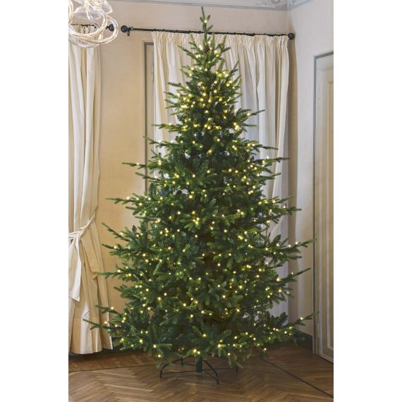 Disponibile in 2 misure: CM 240 h (Diametro CM 165) con 3554 rami e 600 led; CM 300 h (Diametro CM 180) con 5734 rami e 1000 led. Rami misti in PE - PVC. Led a luce calda integrati con 8 funzioni. Montaggio ad ombrello.
