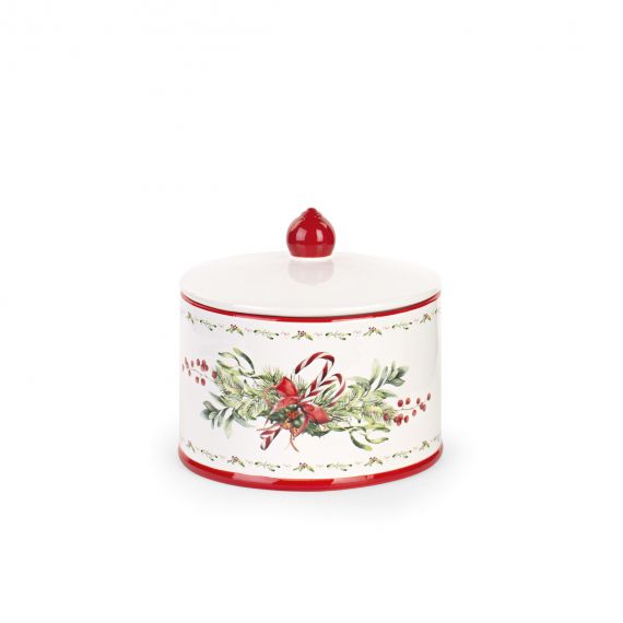 Barattolo in ceramica bastoncini natalizi con coperchio