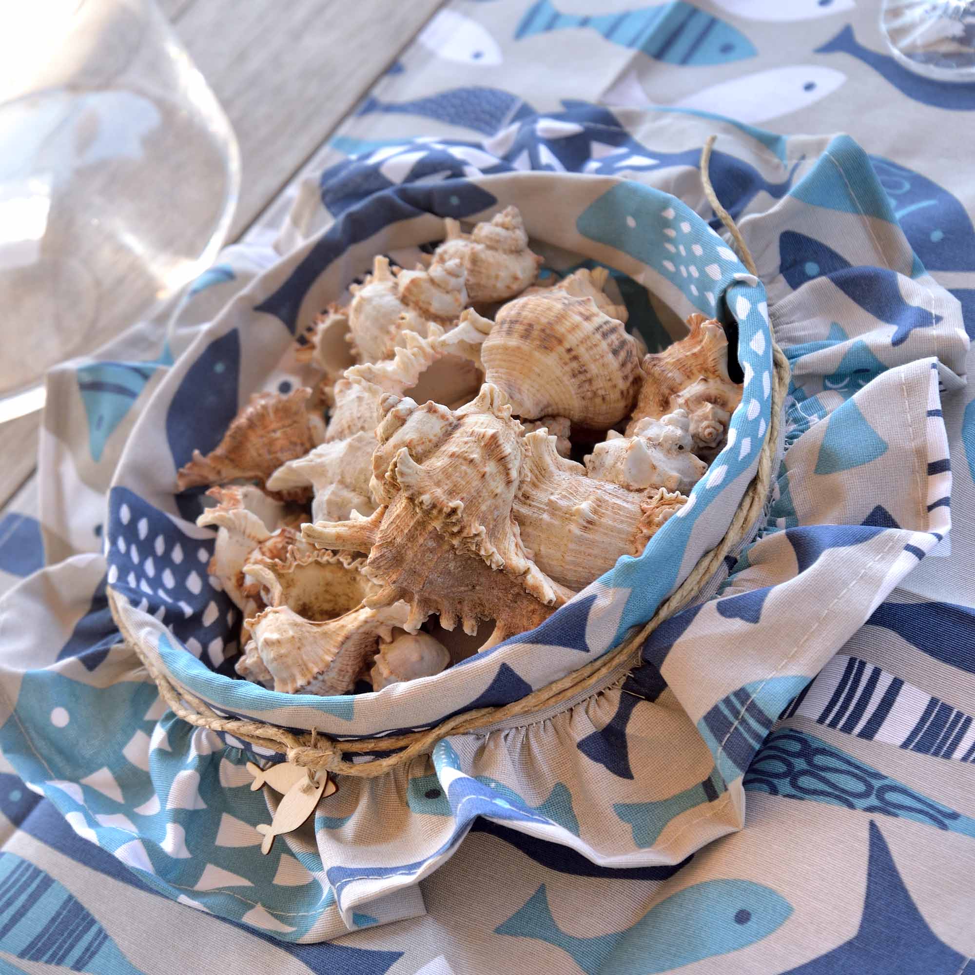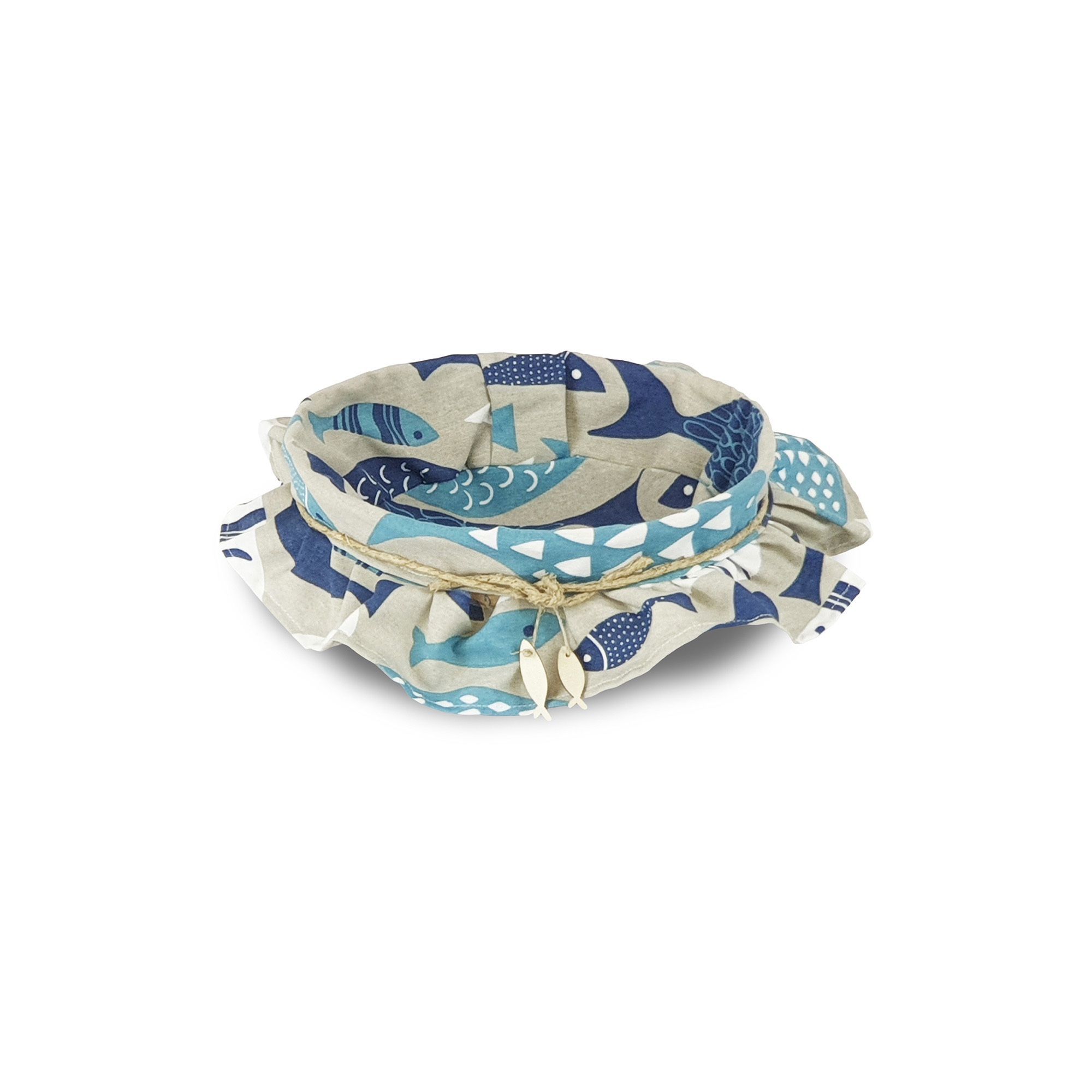 Cestino in tessuto che si presta a contenere qualsiasi cosa, sia alimenti secchi come pane, biscotti, frutta secca, sia oggetti di uso quotidiano della scrivania o del bagno.