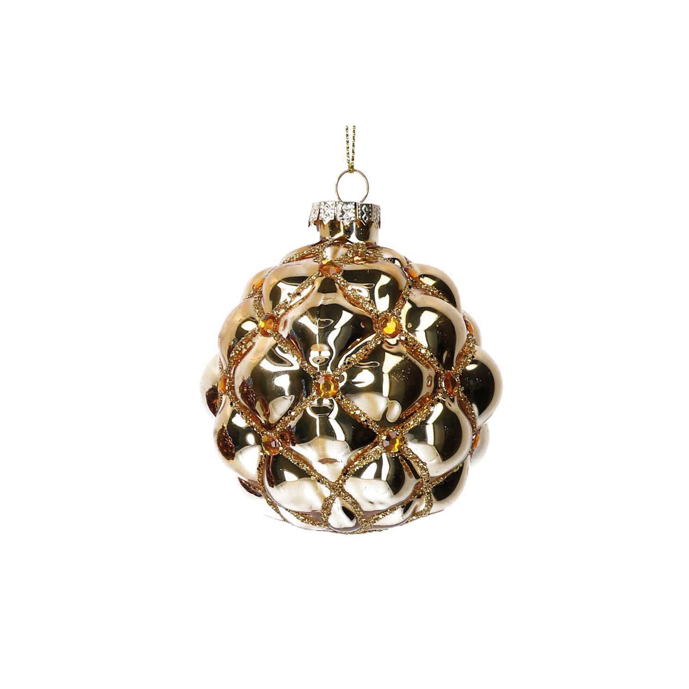 Confezione 12 sfere di vetro oro con glitter e strass