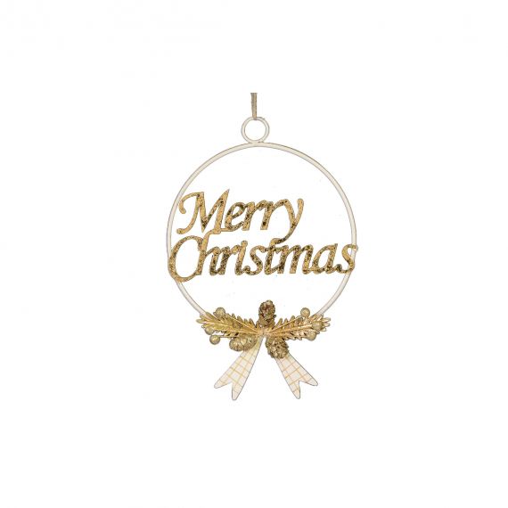 Confezione 2 decorazioni in metallo cerchio merry christmas
