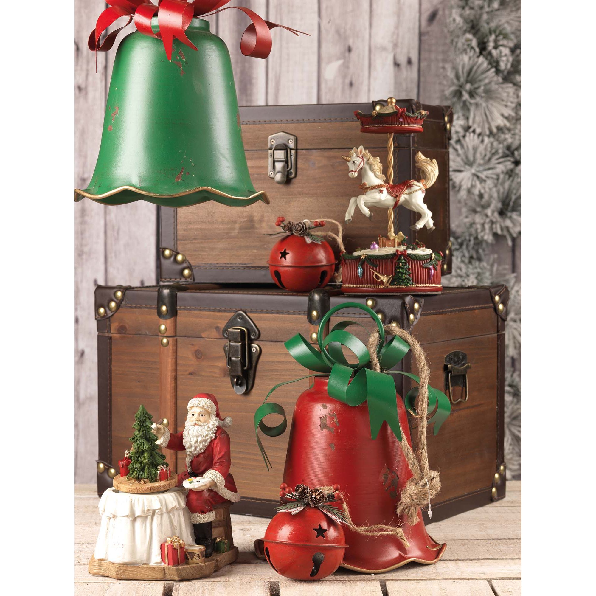 Confezione 3 campanelle rosse in metallo decorate