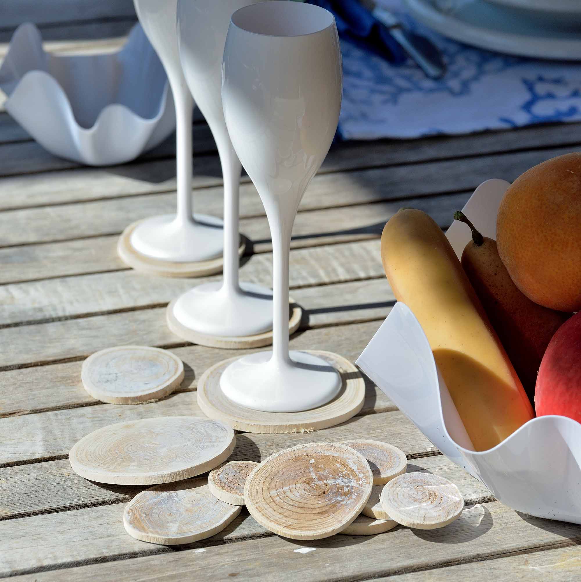 Bicchiere flutes molto elegante, riutilizzabile, in colore bianco coprente realizzato in SAN materiale acrilico per alimenti.