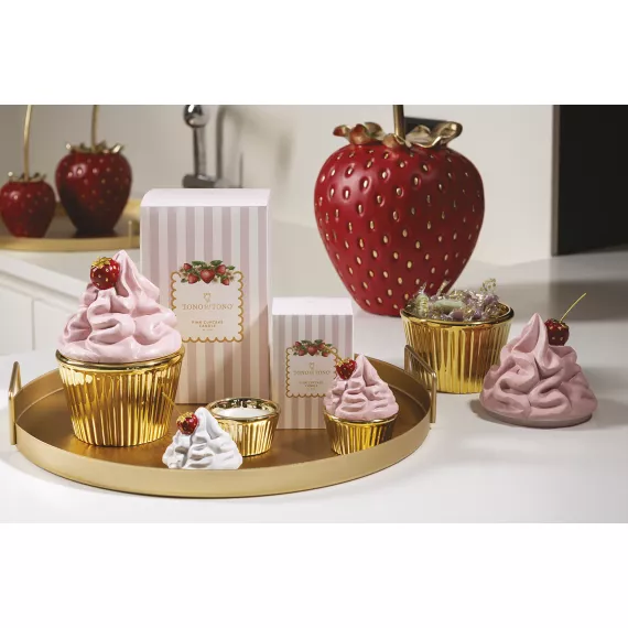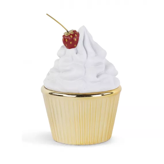 Simpatico Contenitore con Coperchio a forma di Coppa Gelato Cupcake Bianco con Fragolina realizzato in Ceramica e Resina.