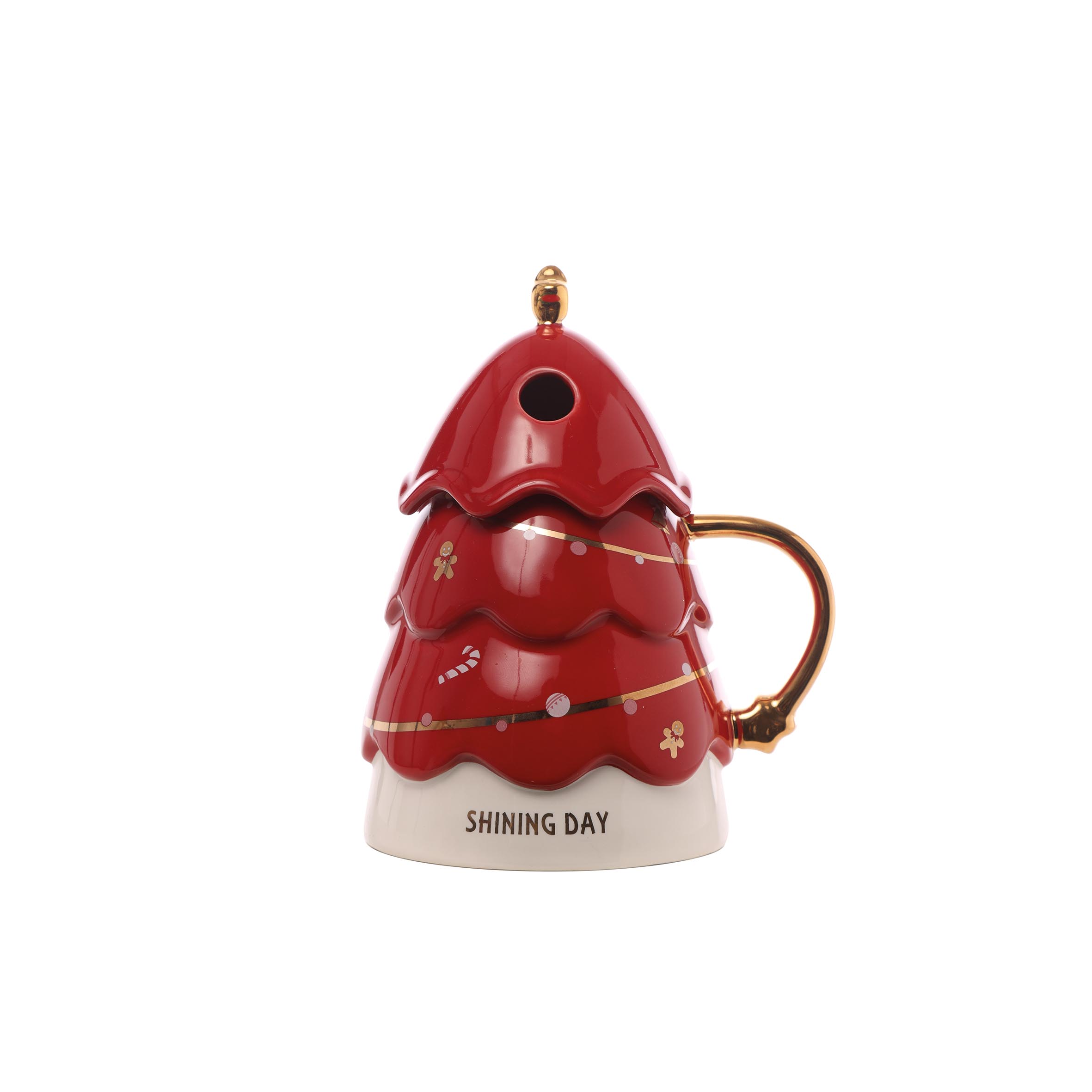 Tazza/Contenitore in ceramica alberello rosso con manico