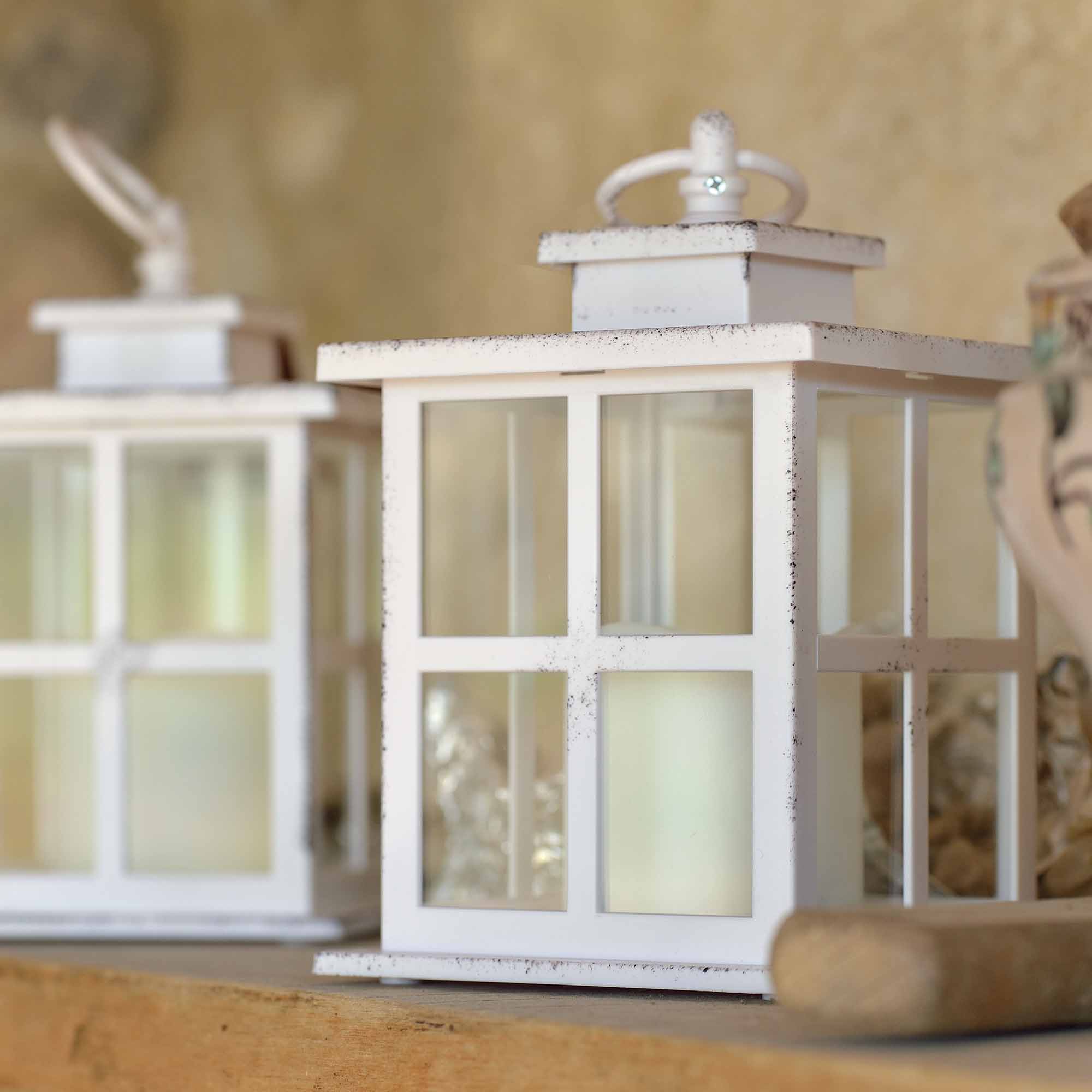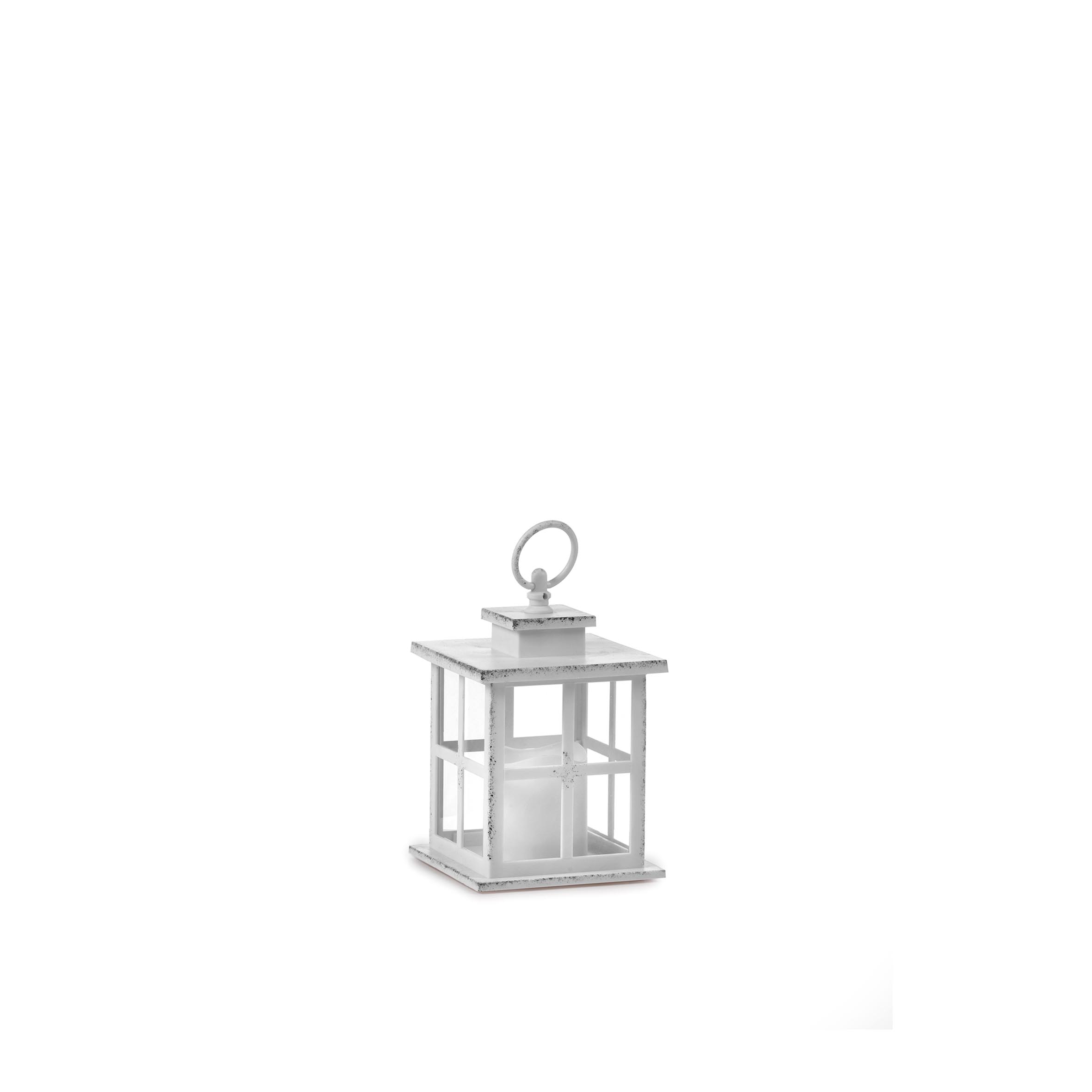 Romantica lanterna realizzata in plastica e colorata di bianco antico, dall'effetto molto rustico.