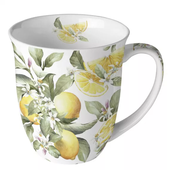 Porta la Bella Stagione sulla Tua Tavola con questa Bellissima e Capiente Mug in Ceramica Decorata Fantasia Limoni.