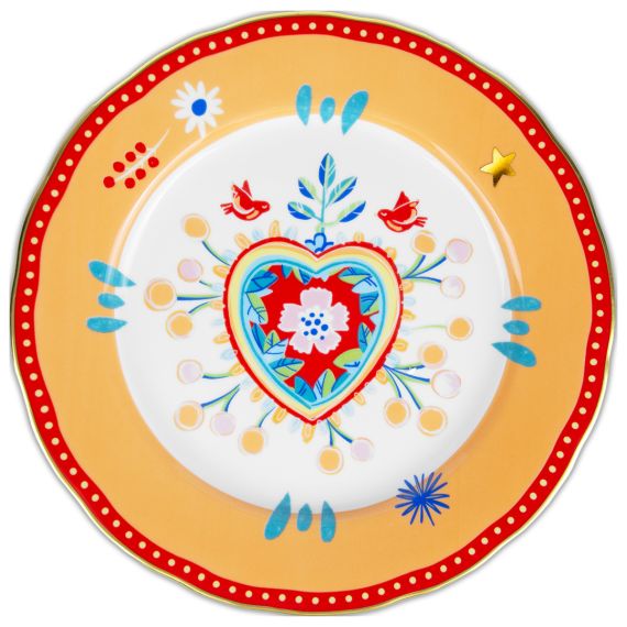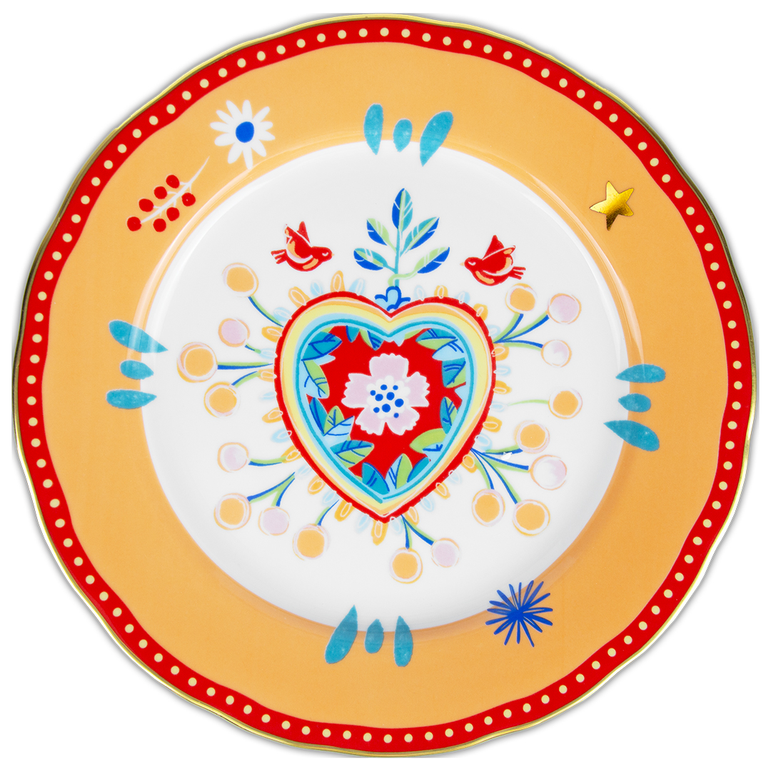 Prezioso Piatto Piano Decorato in Porcellana della collezione “Mamma Mia” perfetto per creare una Tavola piena di colore e allo stesso tempo Originale e Sofisticata.