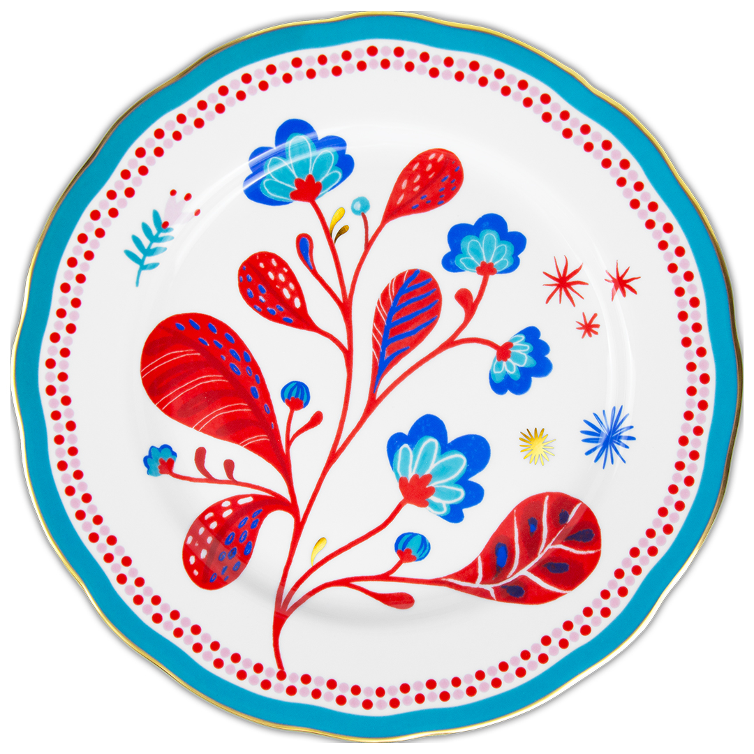 Prezioso Piatto Piano Decorato in Porcellana della collezione “Mamma Mia” perfetto per creare una Tavola piena di colore  e allo stesso tempo Originale e Sofisticata.