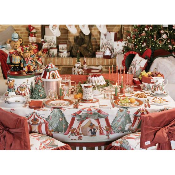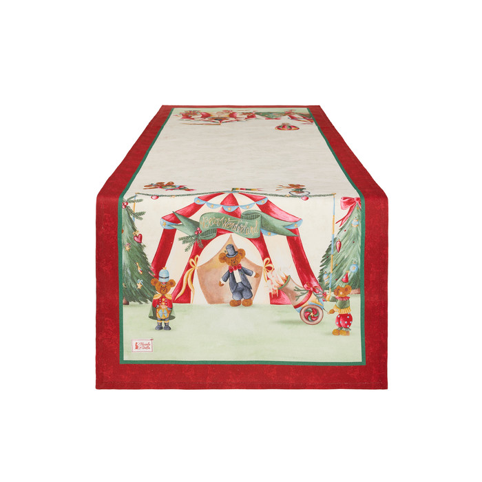 Immancabile Runner in Tessuto fantasia Natalizia tema Circo con Orsetti, perfetto per una Tavola di Natale Gioiosa e Originale! Dimensione 150x50 cm