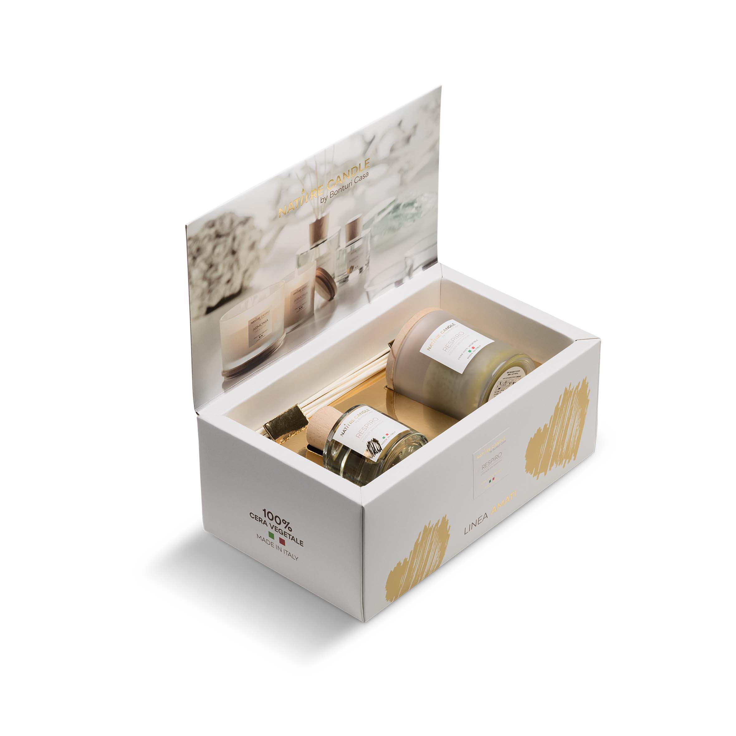 Scrigno composto da un profumatore da 100ml e una candela profumata da 200gr.