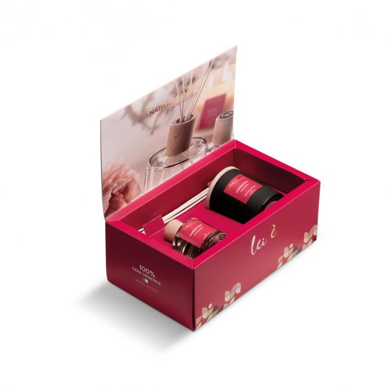 Scrigno composto da un profumatore da 100ml e una candela profumata da 200gr.