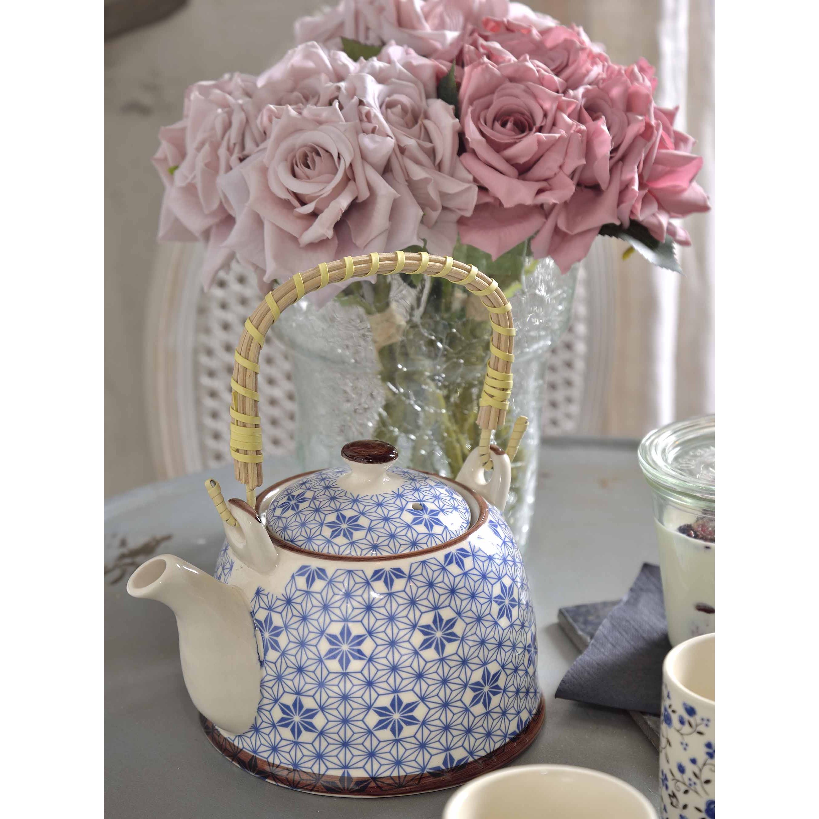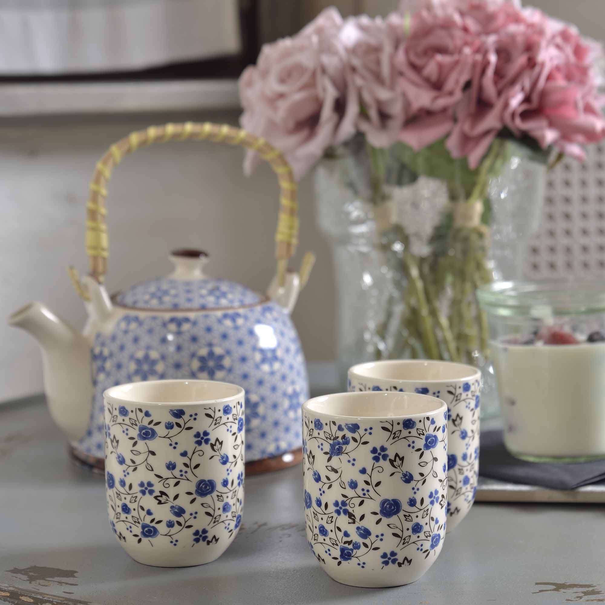 Set da tè o infusi composto da 6 bicchieri e una teiera in ceramica, dipinta con disegni blu e bianchi o verdi e bianchi dal design di ispirazione orientale estremamente decorativo. L’ideale per gli amanti del mondo giapponese che vogliono apparecchiare la tavola con un tocco di classe ispirato allo stile di vita internazionale della moderna Tokyo.