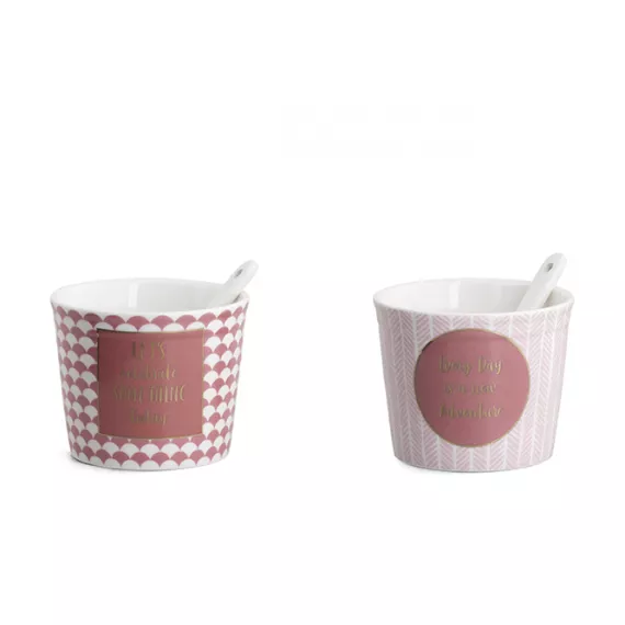 Simpatiche ed Originali Coppette con Palette in Ceramica in doppia fantasia, perfette per il Gelato o Macedonie.
