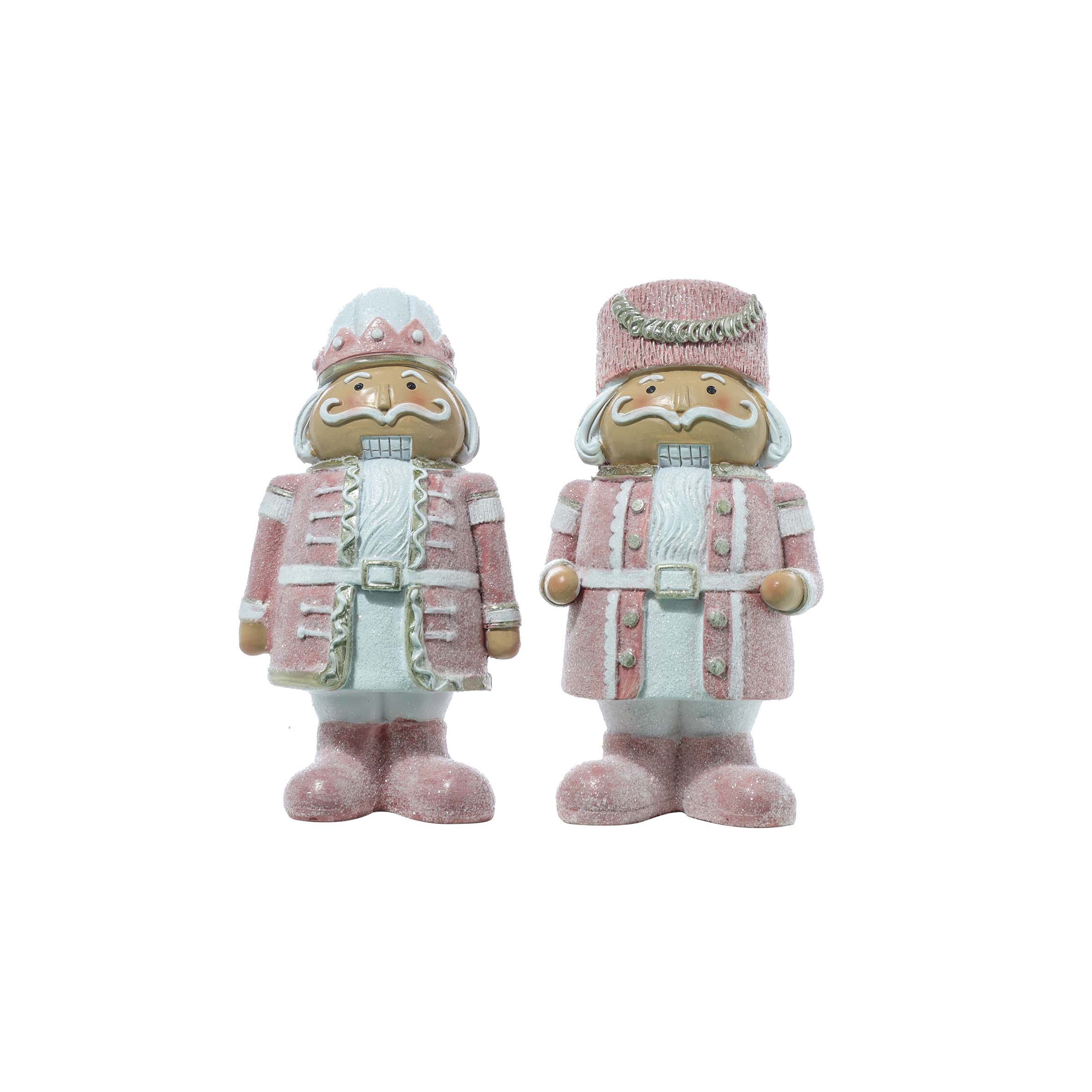 Set 2 schiaccianoci in resina rosa e bianchi con glitter