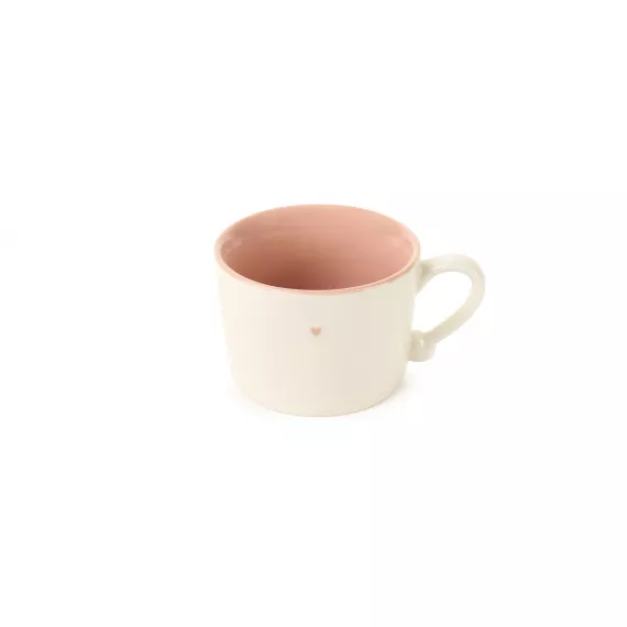 Set da 2 Tazze per la Colazione o per un buon Thè con colore esterno Panna e Interno Rosa Antico con Cuoricino.