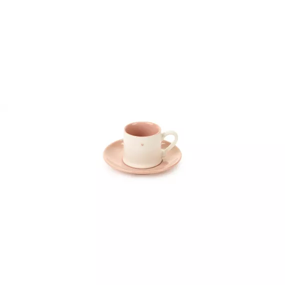 Set da 2 Tazze da Caffè Espresso con colore esterno Panna e Interno Rosa Antico con Cuoricino.
