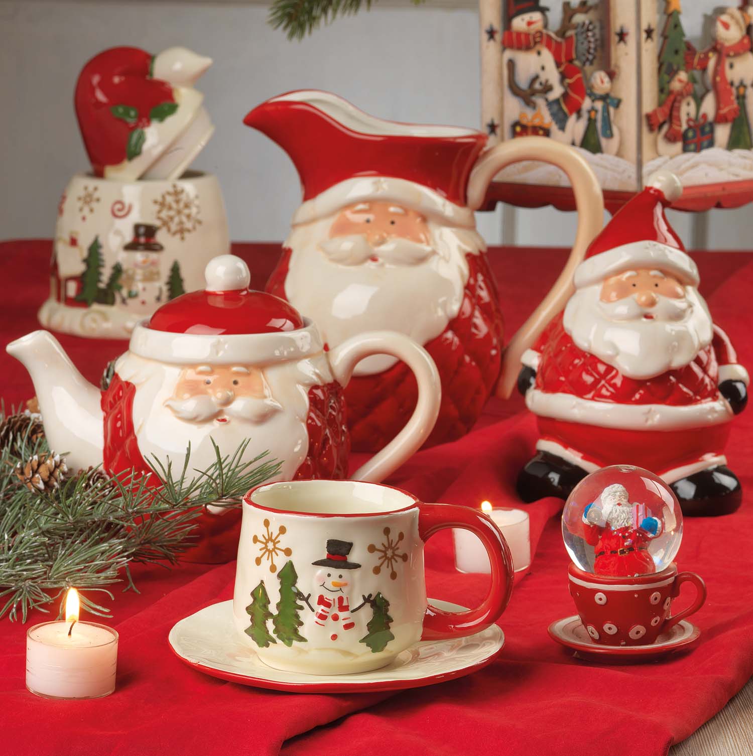Simpatica Teiera perfetta per servire un Tè caldo ai tuoi amici nei pomeriggi freddi sotto Natale. In ceramica decorata in bianco e rosso con tema Babbo Natale.