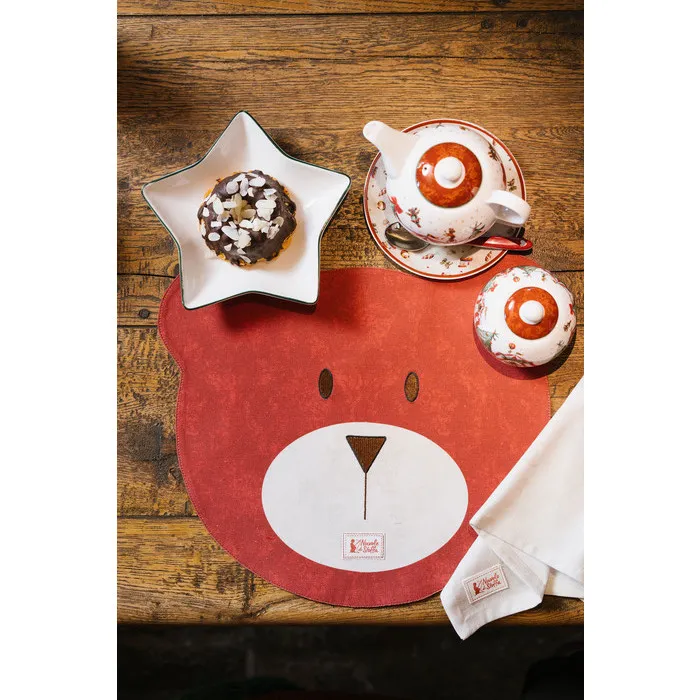 Divertente Tovaglietta all'Americana a forma di Orso in Tessuto colore Rosso. Perfetta per una Tavola di Natale del tutto Orginale. Dimensioni 40x33 cm