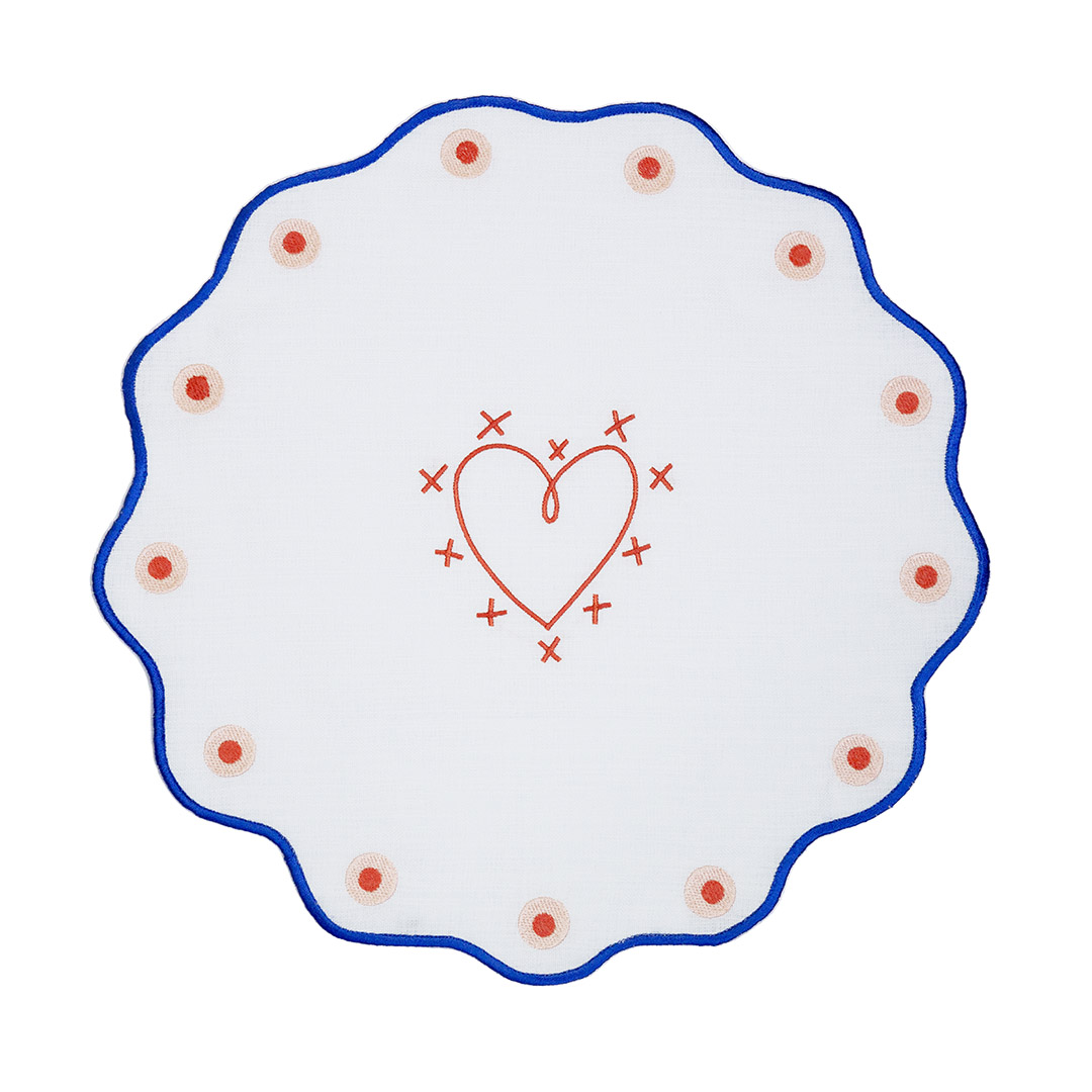 Tovaglietta Tonda Ricamata in cotone della collezione “Mamma Mia” concepita per realizzare apparecchiature monoposto originali ed eleganti.