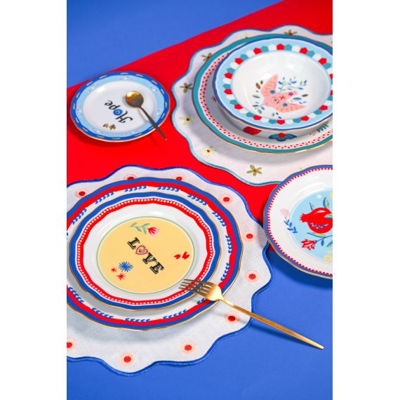 Con smerlature colorate e frasi ricamate renderanno la tua tavola non solo sofisticata ma anche unica e preziosa. Abbinala con le altre Tovagliette direttamente su un tavolo o appoggiate sopra ad una tovaglia tinta unita ma anche fantasia e stupisci tutti i tuoi ospiti per stile e originalità.