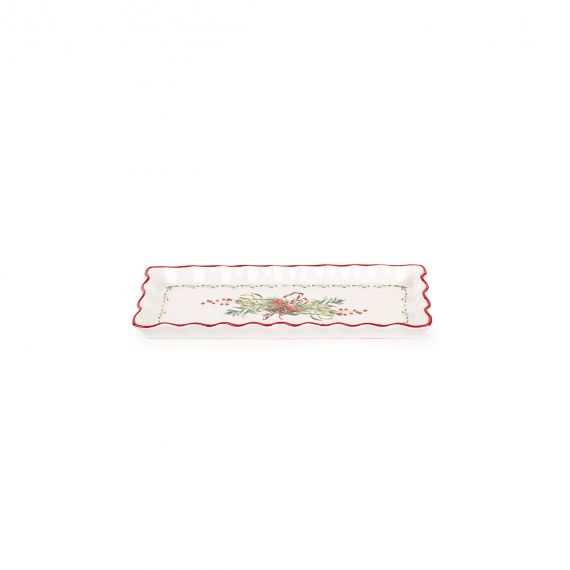 Vassoio rettangolare in ceramica bastoncini natalizi